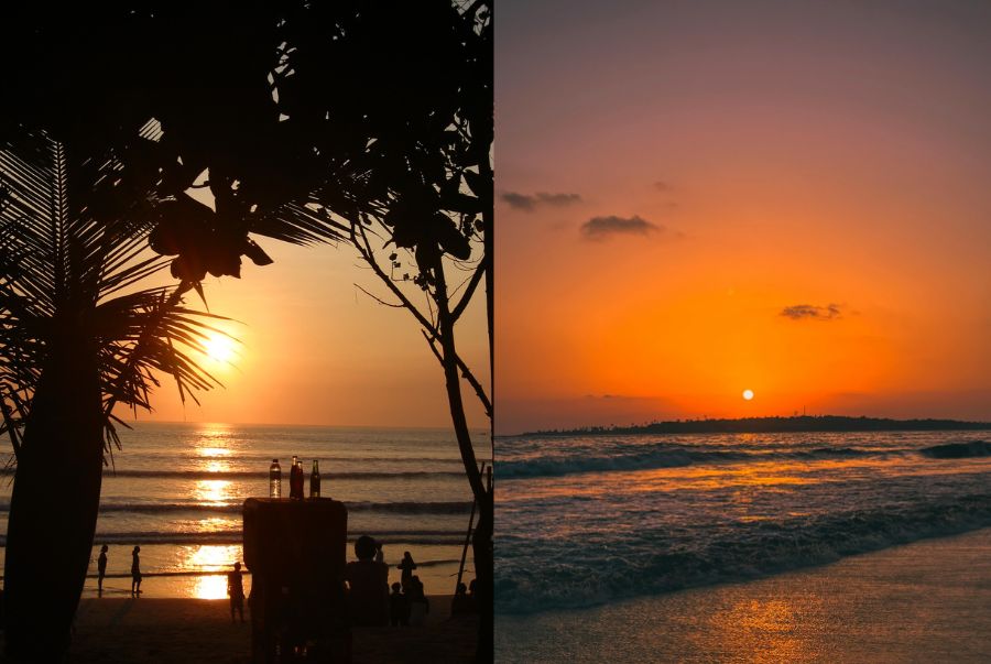 Ngắm hoàng hôn tuyệt đẹp: Khi mặt trời dần khuất sau đường chân trời, bầu trời Kuta rực rỡ sắc cam, khiến bất cứ ai cũng phải ngỡ ngàng.