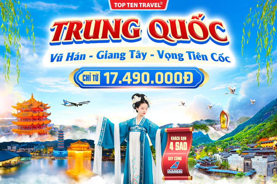 Tour Du lịch Trung Quốc: Vũ Hán - Giang Tây - Vọng Tiên Cốc tại Top Ten Travel sẽ đưa bạn từ thành phố lịch sử Vũ Hán sầm uất đến vẻ đẹp hoang sơ, hùng vĩ của Giang Tây và cuối cùng là lạc vào tiên cảnh Vọng Tiên Cốc huyền ảo.