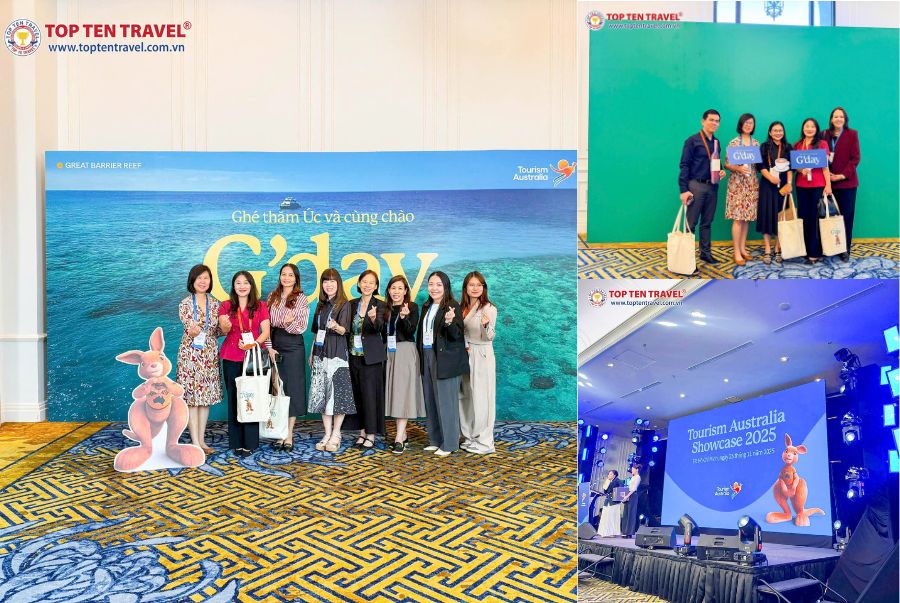 Vào sáng ngày 25/11 tại khách sạn Mai House Saigon, Top Ten Travel vô cùng vinh dự khi là một trong những công ty du lịch uy tín được tham dự hội nghị Tourism Australia Showcase 2025. Đây là một sự kiện du lịch thường niên quy tụ các cơ quan, tổ chức và đối tác hàng đầu trong ngành du lịch quốc tế đến cập nhật xu hướng, mở rộng quan hệ hợp tác và tiếp nhận những thông tin mới nhất về thị trường du lịch Úc năm 2026.