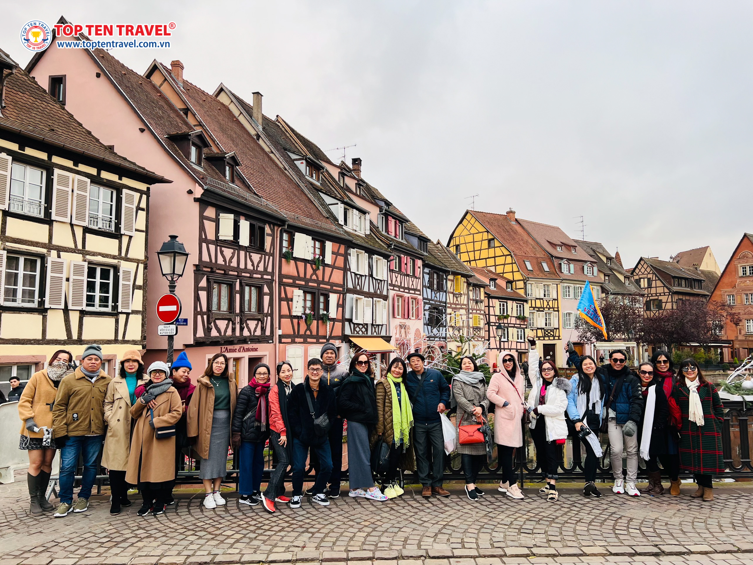 Trưa: Đoàn bữa trưa tại nhà hàng địa phương. Sau đó tiếp tục hành trình đến với  Colmar được đánh giá là một trong những thành phố đẹp nhất nước Pháp nằm bên sông Lauch thơ mộng. Được ví như tiểu Venice của xứ sở tình yêu Pháp, làng cổ Colmar Pháp mang đến vẻ đẹp thanh bình và yên ả, đưa du khách lạc vào thế giới của những câu chuyện cổ tích xưa.