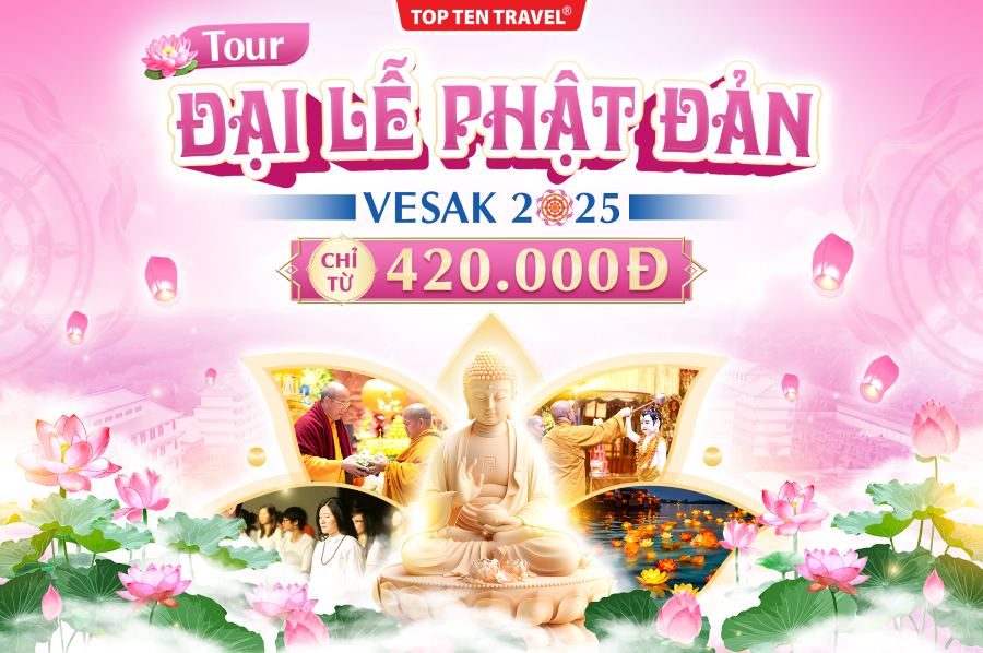 Tour Lễ Phật Đản Vesak 2025 tại nhà Top Ten Travel là cơ hội để bạn được hòa mình vào không gian thanh tịnh, trang nghiêm của Đại lễ - Một trong những sự kiện Phật giáo quan trọng nhất trong năm.