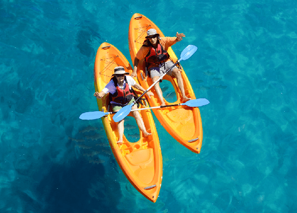 Quý khách trải nghiệm hoạt động biển với sự hướng dẫn tận tình của hướng dẫn viên và bảo hộ trên du thuyền 5 sao: