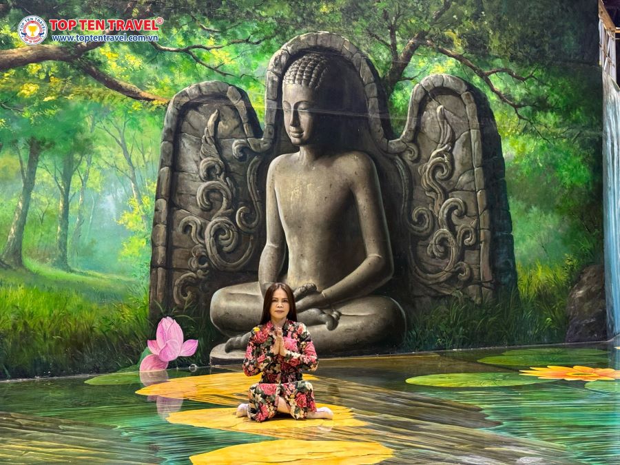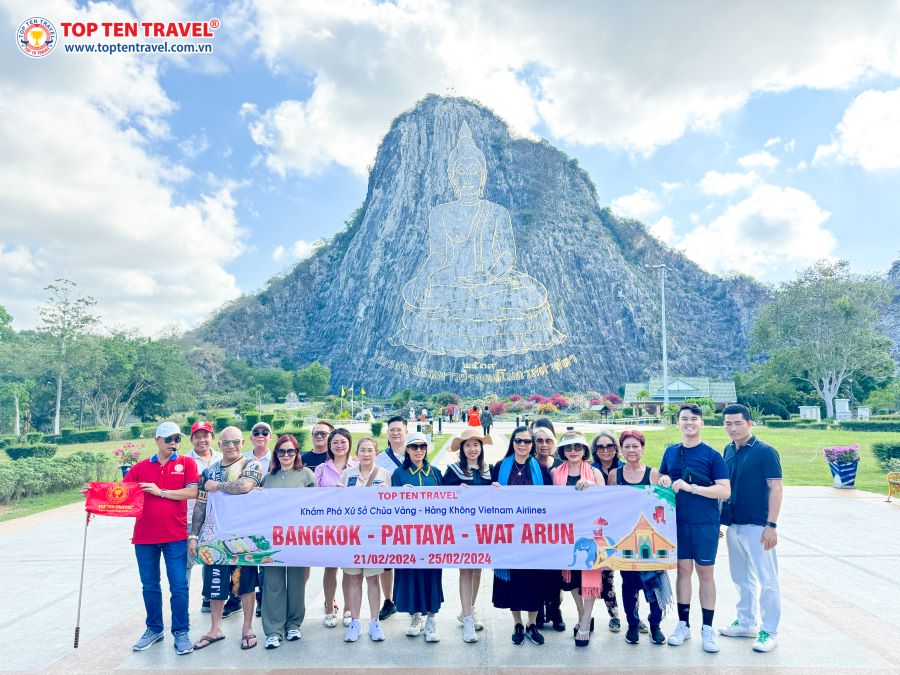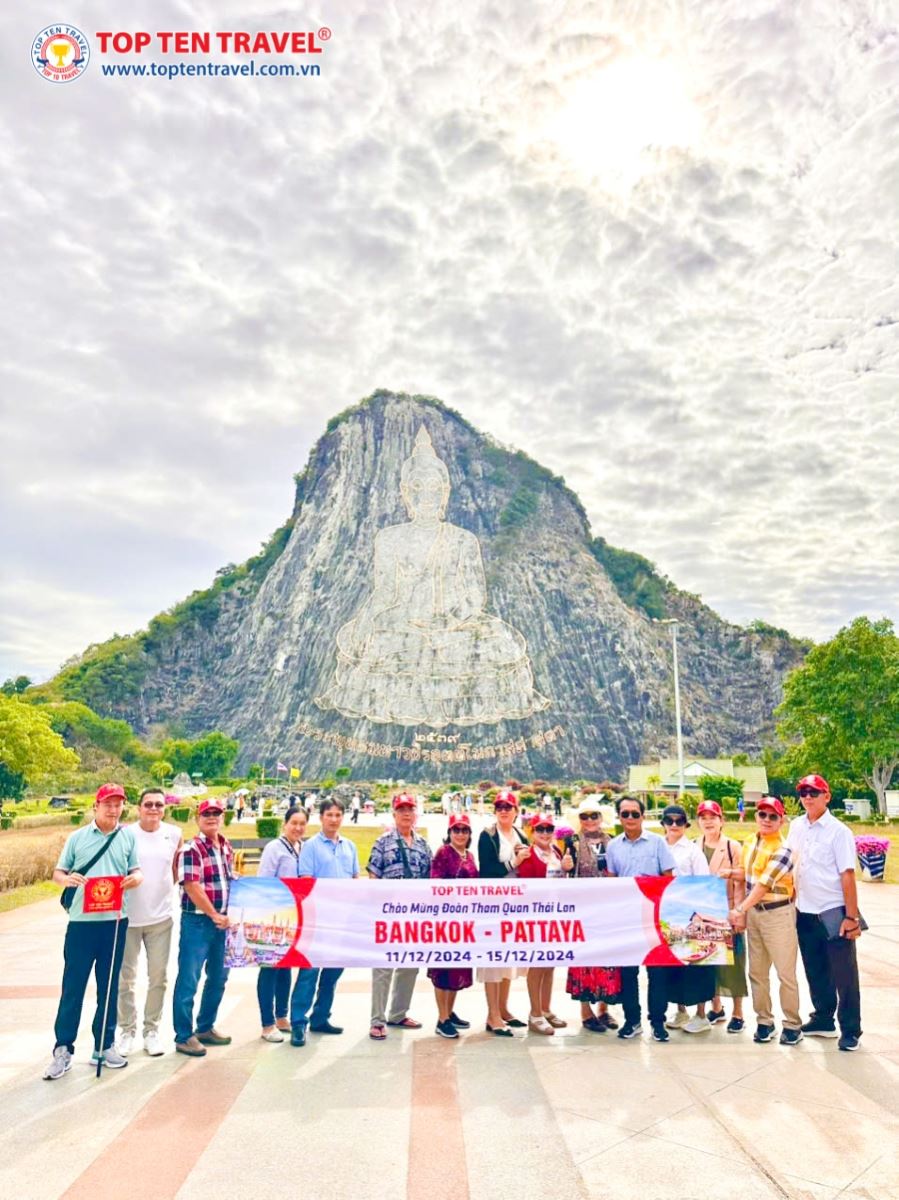 Trân Bảo Phật Sơn – Khao Chee Chan chiêm ngưỡng bức tượng Phật dát vàng 24k chạm nổi tinh xảo trên vách đá sừng sững. Công trình cao 100 mét, ngang 70 mét, đúc theo thế Phật Thích Ca Mâu Ni đang tọa thiền, được xây dựng năm 1996. Tọa lạc giữa xung quanh là thiên nhiên trùng điệp, bức tượng Phật sừng sững uy nghi như tô điểm cho không gian nơi đây thêm phần linh thiêng huyền bí