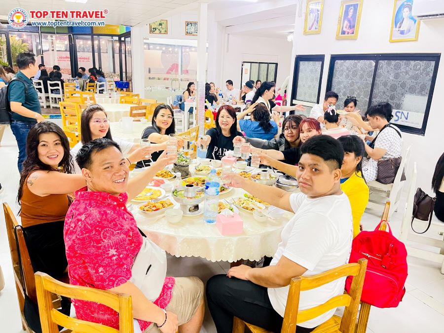 Trưa: Đoàn dùng bữa trưa tại nhà hàng địa phương sau đó nghỉ ngơi ngắn tại nhà hàng cho đến giờ hẹn đi tham quan: