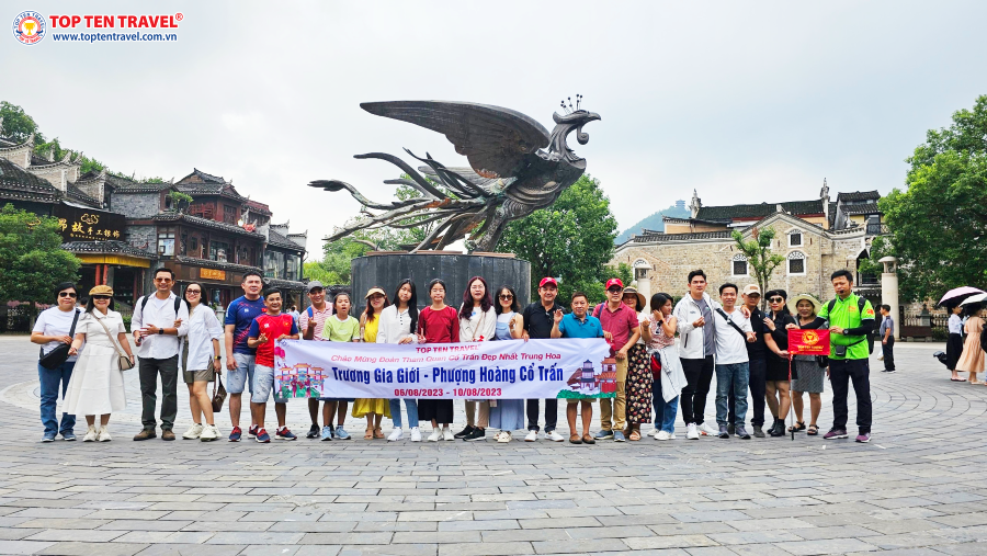 Trưa: Đoàn dùng bữa tại nhà hàng địa phương sau đó tiếp tục khởi hành về Phượng Hoàng Cổ Trấn, nằm ở phía tây tỉnh Hồ Nam, Trung Quốc, đây là thị trấn cổ được xây dựng bên dòng Đà Giang, có nền văn hóa lịch sử hơn 1.000 năm tuổi nhưng vẫn còn nguyên vẹn nét văn hóa, kiến trúc đặc trưng của nghìn xưa để lại.Trên đường đi, quý khách ghé tham quan: