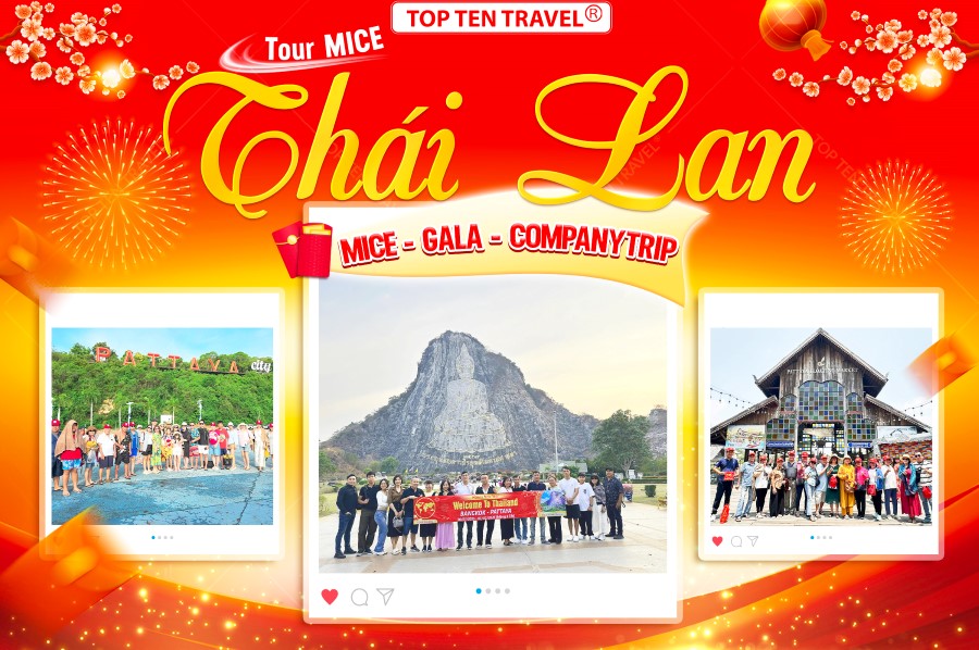 Top Ten Travel là một đơn vị tổ chức tour du lịch đoàn chuyên nghiệp và đáng tin cậy khi đưa hàng nghìn du khách đi đến mọi miền thế giới. Với sứ mệnh đem đến dịch vụ tối ưu và những chuyến du lịch phù hợp nhất cho khách hàng, chúng tôi đã xây dựng và gìn giữ được chất lượng và lòng tin nơi khách hàng. Các Tour Khách Đoàn Thái Lan sở hữu các dịch vụ cao cấp, chương trình tour hợp lý, lịch khởi hành hàng tháng, hỗ trợ visa bao đậu, giảm giá cho khách hàng đăng ký sớm. Khách hàng có thể liên hệ hotline 0901330018 để biết thêm chi tiết.