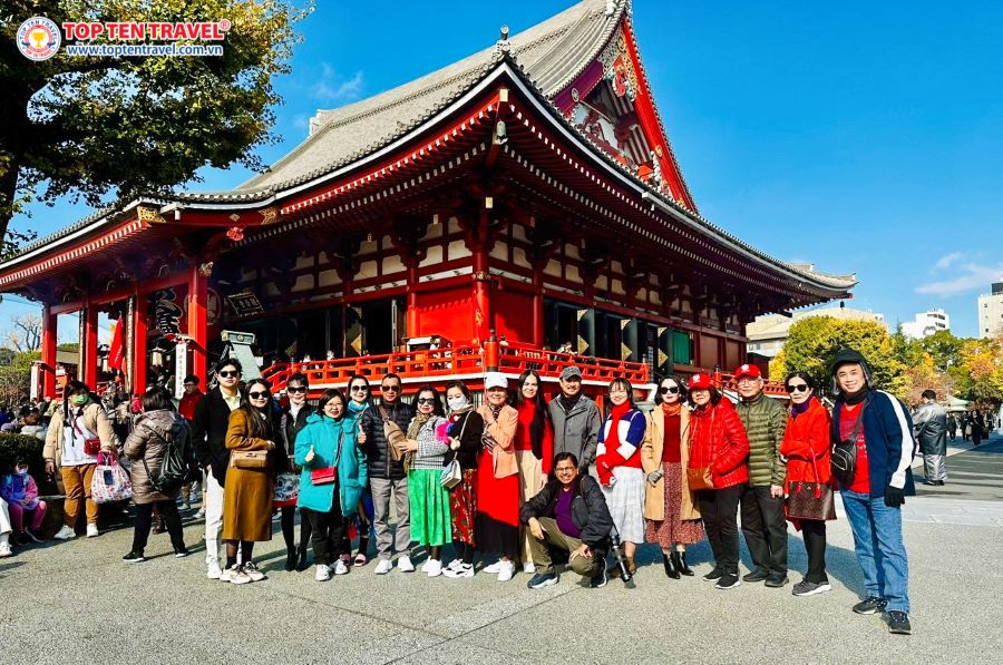 Đoàn khách nhà Top Ten Travel tham quan và chụp ảnh tại đền Asakusa Kannon
