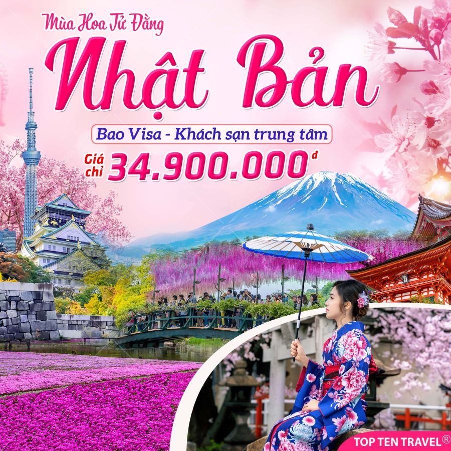 Chương trình Tour Nhật Bản Mùa Hoa Tủ Đằng: Narita - Tokyo - Yamanashi - Kyoto - Osaka kéo dài 6 ngày 5 đêm của Top Ten Travel sở hữu hành trình tham quan hoàn toàn mới mẻ, hứa hẹn sẽ mang đến Quý du khách những kỷ niệm vô cùng khó quên, dừng chân tại những điểm đến nổi tiếng hàng đầu xứ anh đào, trải nghiệm nhiều hoạt động văn hóa thú vị cùng các hoạt động cao cấp,...