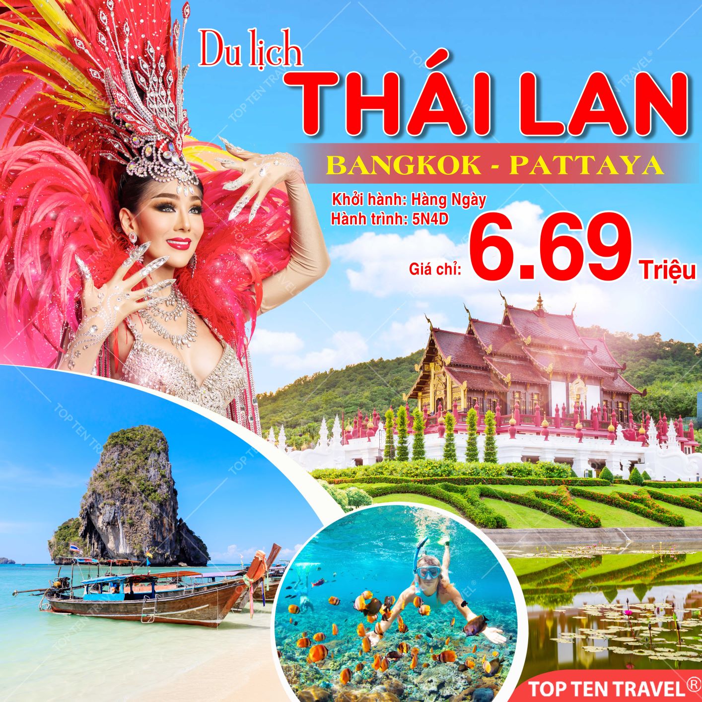 Đảo Coral: Hòn đảo được bao quanh bởi những rặng san hô đầy màu sắc. Tại đây quý khách có thể tắm biển hoặc tham gia các trò chơi thể thao nước như nhảy dù, trượt nước, jetski, lặn biển, bắn súng,… (chi phí tự túc).