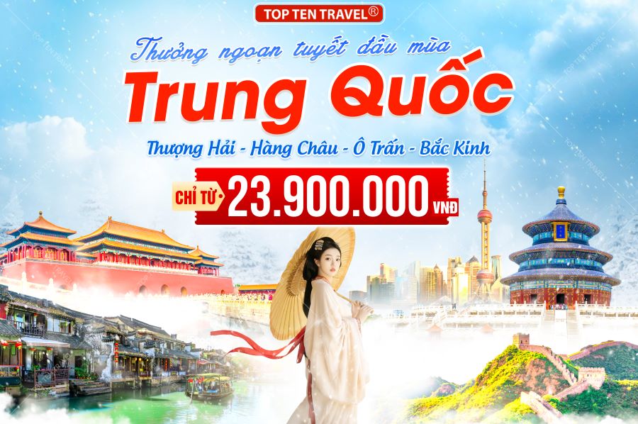 Tour du lịch Trung Quốc 2025: Thượng Hải – Hàng Châu – Bắc Kinh của nhà Top Ten Travel sở hữu chương trình tour hợp lý và hấp dẫn, lịch khởi hành thường xuyên và đa dạng, các dịch vụ đi kèm cao cấp cùng mức giá trọn gói tốt nhất thị trường. Lựa chọn Top Ten Travel là người bạn đồng hành trong hành trình này, Quý Du khách sẽ được ghé thăm những địa điểm tham quan nổi tiếng hàng đầu tại đất nước tỷ dân như Cố Cung - Tử Cấm Thành, Vạn Lý Trường Thành, Chùa Phật Ngọc Thượng Hải, Bến Thượng Hải, Ô Trấn Cổ, Quảng Trường Thiên An Môn, Đại Lộ Nam Kinh,...