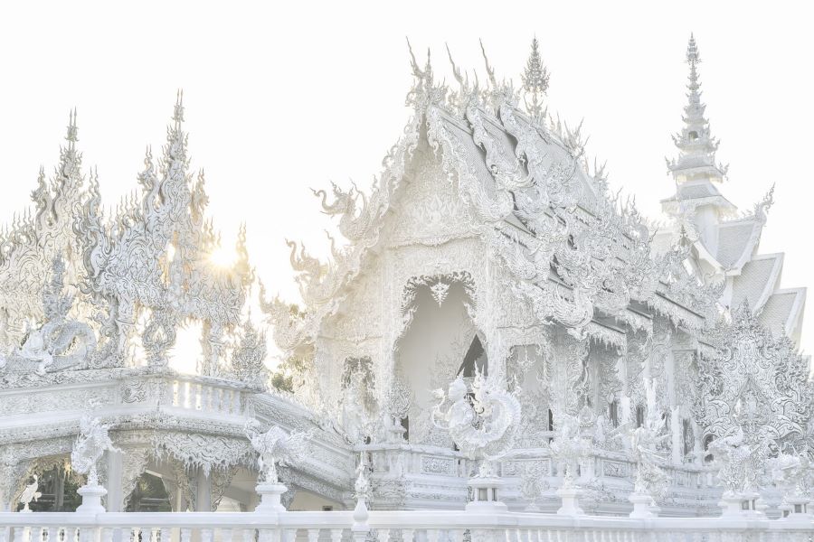 Chùa Trắng – Wat Rong Khun - Ngôi chùa được kết hợp một cách hoàn hảo giữa lối kiến trúc Thái cổ điển với phong cách siêu thực cùng tông màu chủ đạo toàn trắng biểu trưng cho sự tinh khiết của Đức Phật.